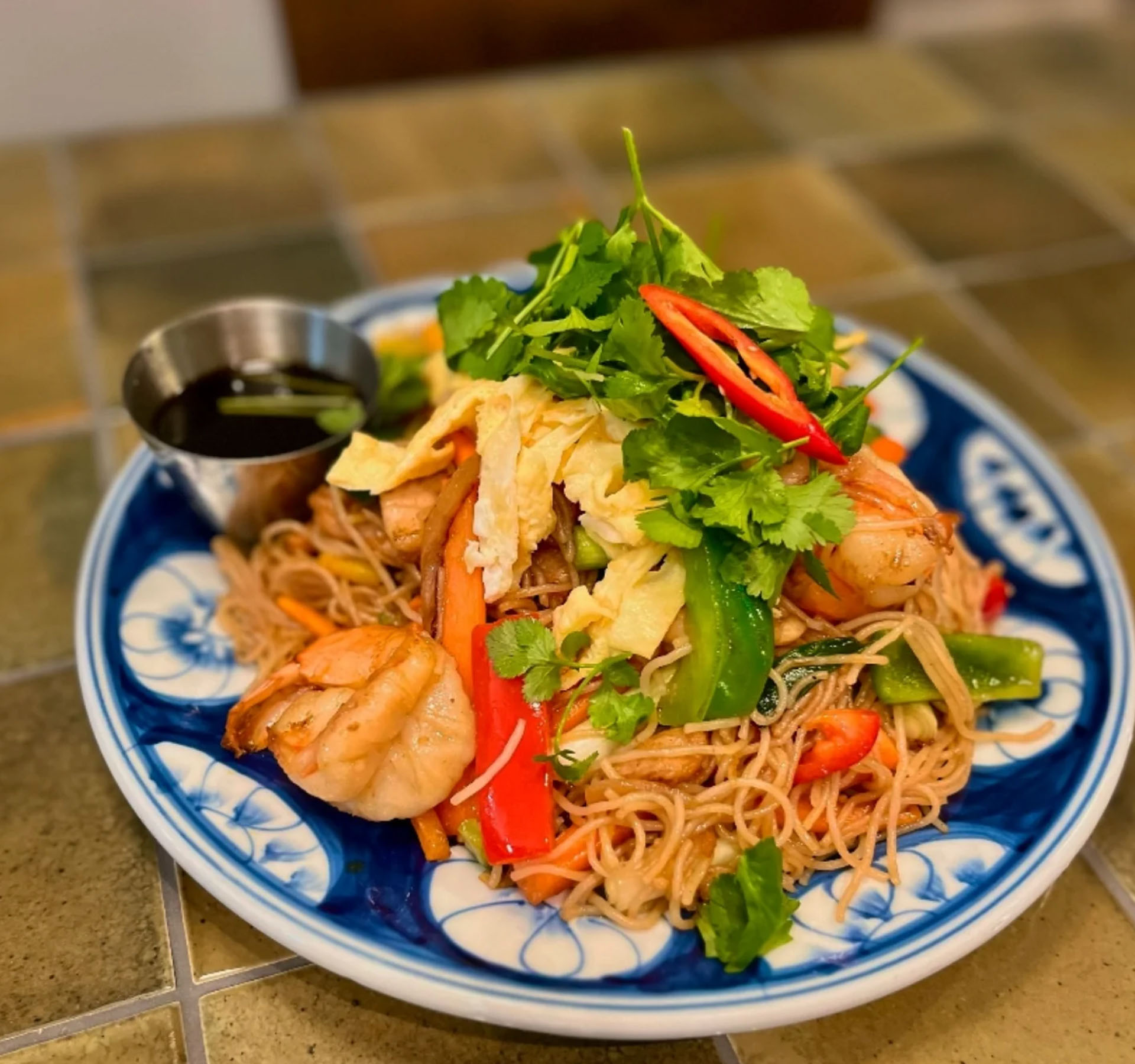 Upplev det genuina köket från södra Vietnam, där varje rätt är en smakresa fylld av färska örter, kryddiga såser, krispiga grönsaker och nudlar.