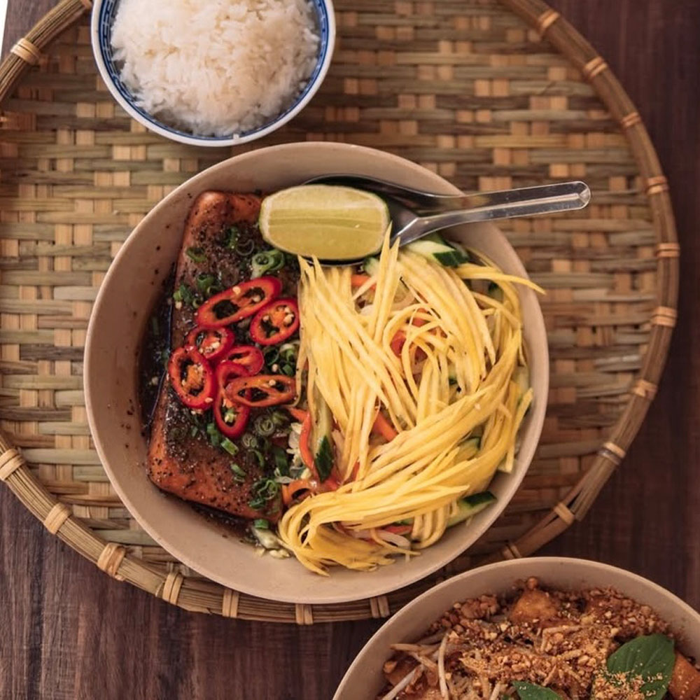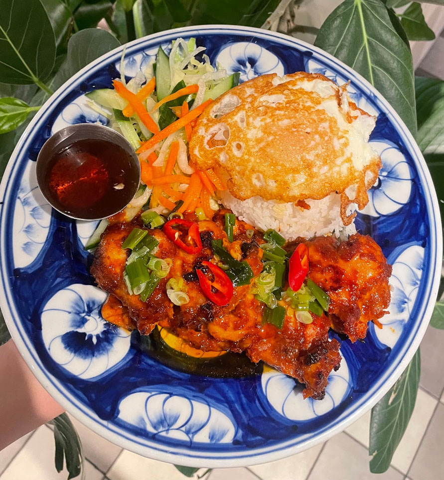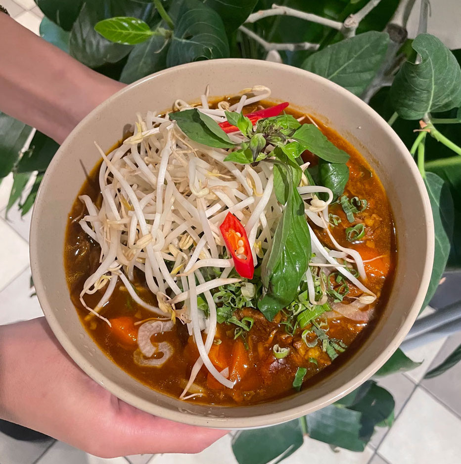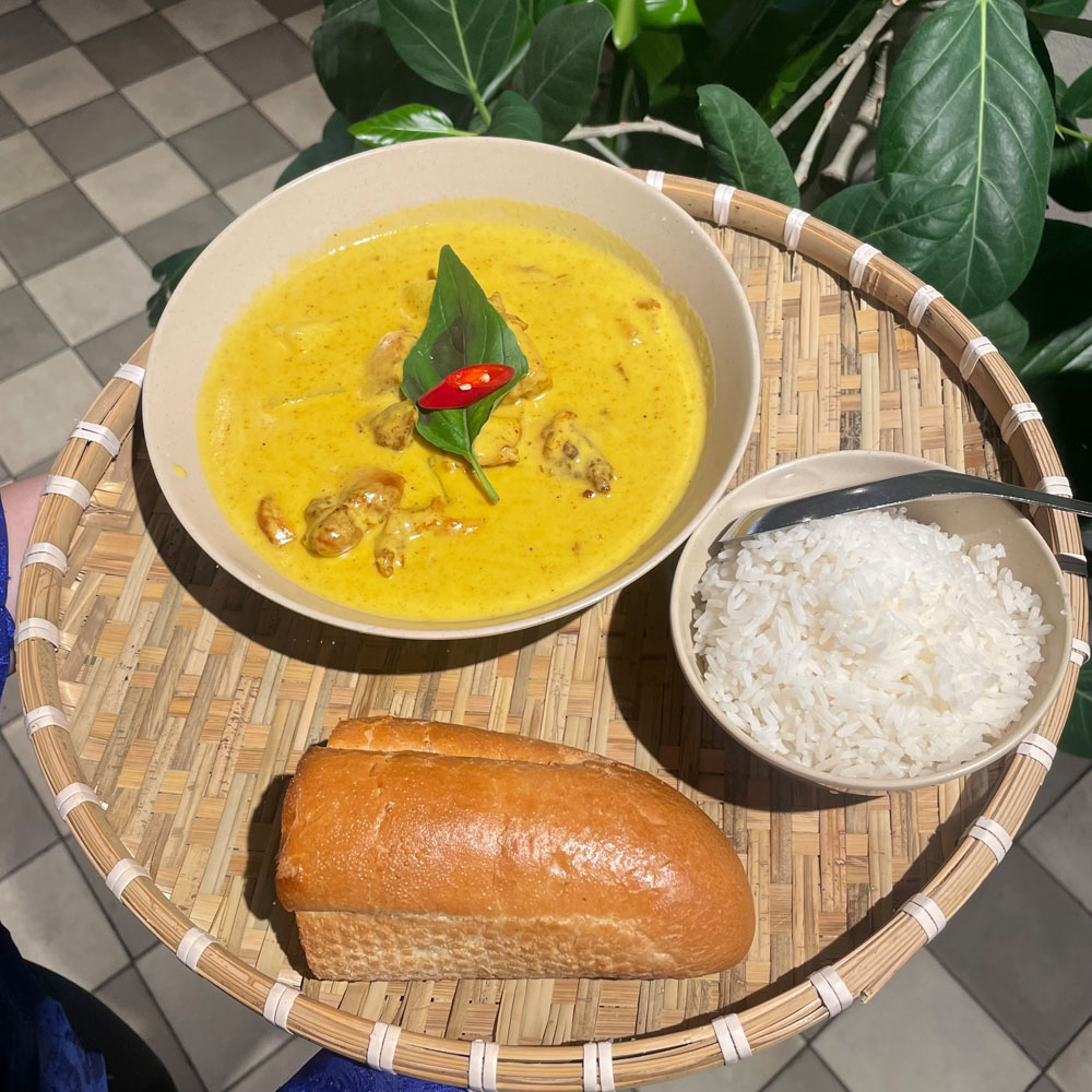 Curry på sydvietnamesiskt vis med ris och baguette (G)